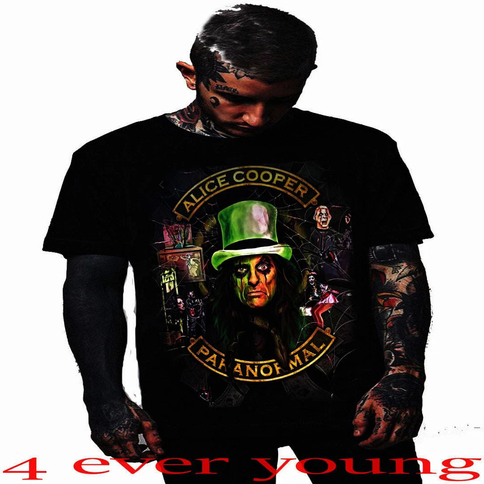 This Alice Cooper t-shirt is crafted from 100% high-quality cotton, ensuring exceptional comfort and durability. Featuring a vibrant silk screen print, it delivers sharp, long-lasting graphics that capture the iconic style of the legendary rock artist. Perfect for fans seeking both authenticity and premium fabric in their apparel.