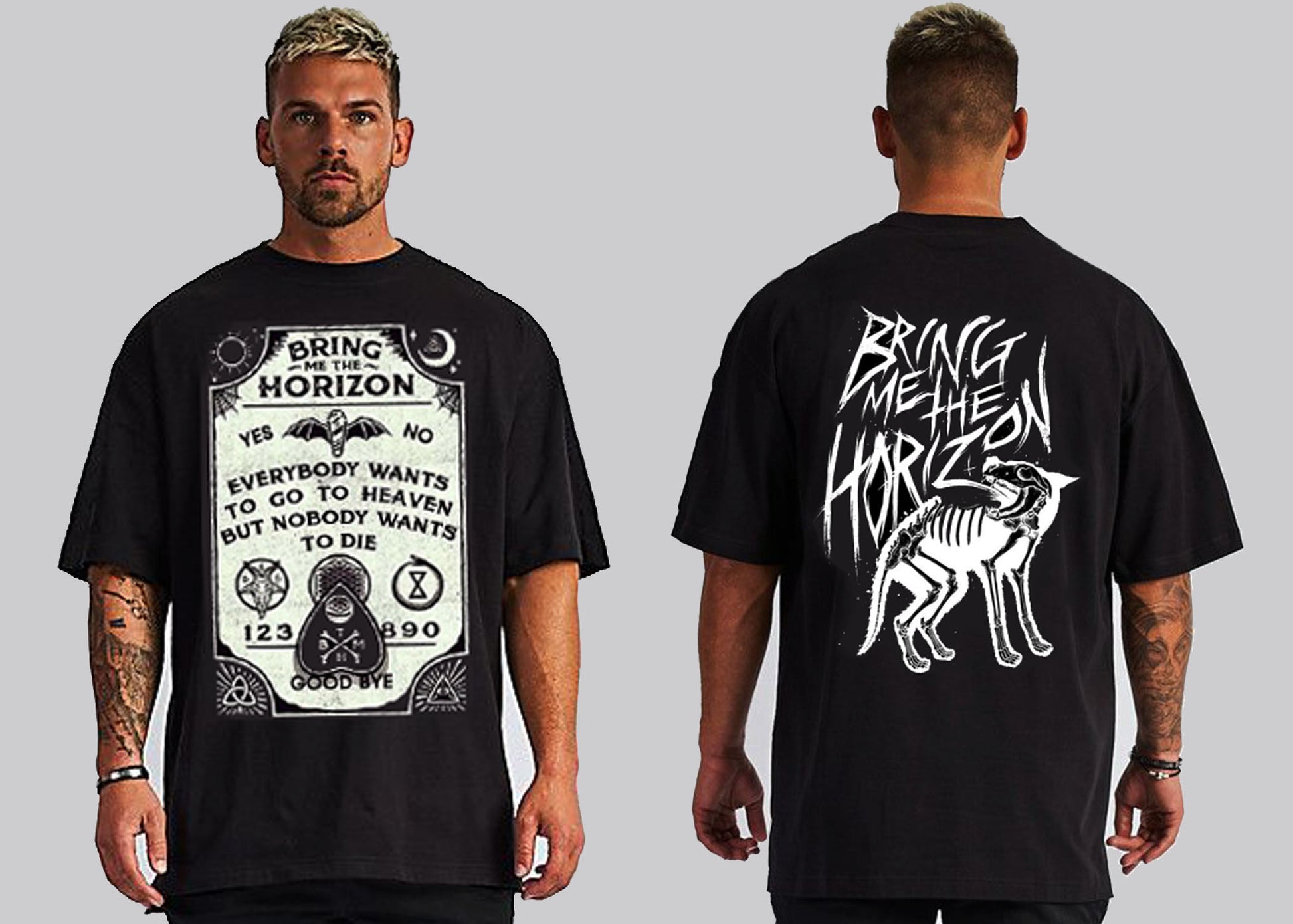 Experience premium comfort with our Bring Me my Horizon Ouija black t-shirt. Crafted from 100% cotton for breathability and durability, this high-quality garment features meticulous silk screen printing that maintains its vibrant appearance through multiple washes. The professional-grade fabric ensures a perfect fit while providing all-day comfort for fans of the iconic design.