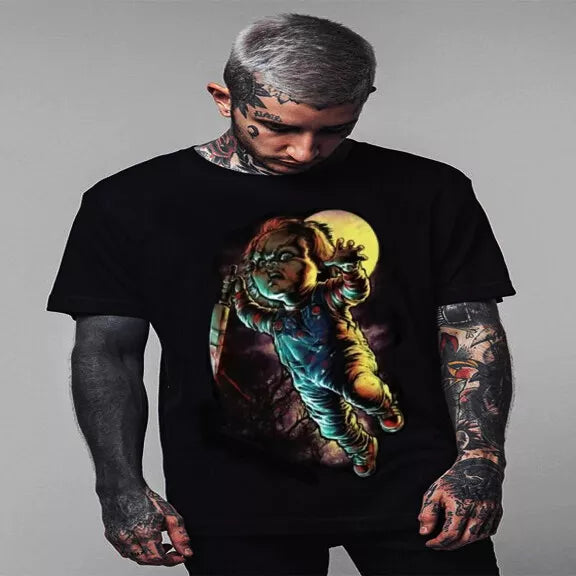Crafted from 100% cotton, the Chucky Moon T-shirt offers exceptional comfort and breathability. Featuring a high-quality silk screen print, this shirt delivers vibrant, long-lasting graphics that resist fading. Ideal for those seeking both style and durability in their casual wear.