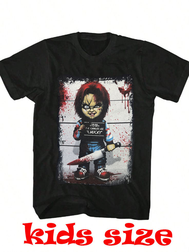 Crafted from 100% cotton, the Chucky Mugshot T-shirt offers superior comfort and breathability for kids. Featuring a vibrant silk screen print, this tee delivers lasting color and sharp detail, making it a durable and stylish choice for everyday wear.