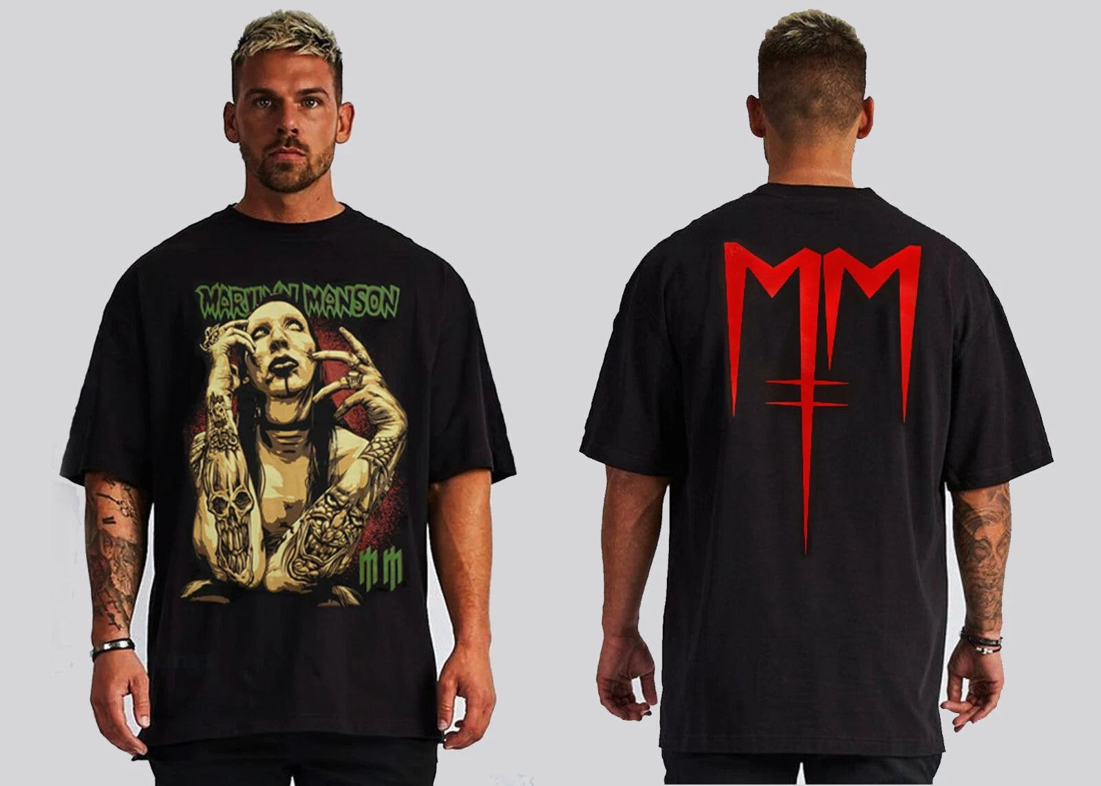 This Marlyn Manson T-shirt is crafted from 100% pure cotton, ensuring exceptional comfort and breathability. Featuring high-quality silk screen printing, the design offers vibrant, long-lasting colors that resist fading. Perfect for fans seeking both style and durability, this shirt combines premium materials with expert craftsmanship for a standout addition to your wardrobe.