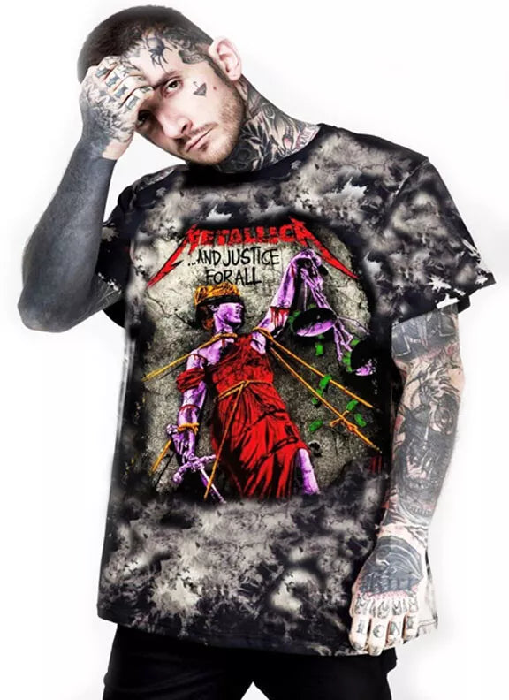 This Metallica And Justice For All T-shirt features a vibrant tie-dye design crafted from 100% cotton for superior comfort and breathability. Printed using high-quality silk screen techniques, it ensures lasting color and detail. Perfect for fans seeking authentic style combined with durable wear.