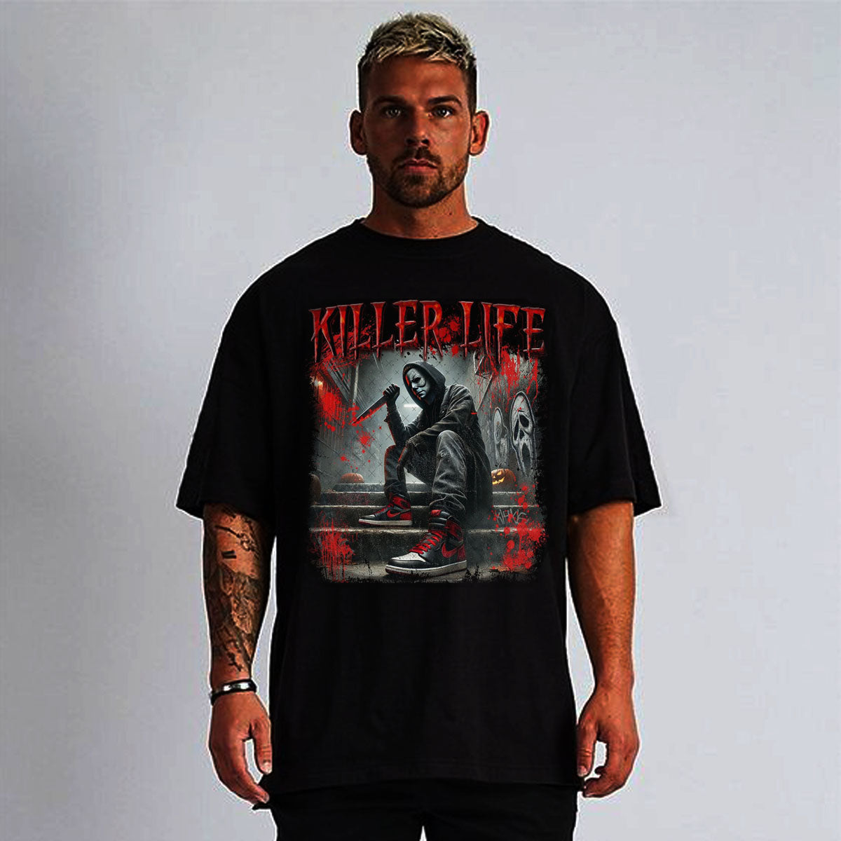 Crafted with precision on 100% cotton fabric, this Michael Myers Killers t-shirt features high-quality silk screen printing that ensures durability and vivid detail. The professional-grade printing technique preserves the iconic horror imagery through multiple washes while maintaining the shirt's comfort and breathability.