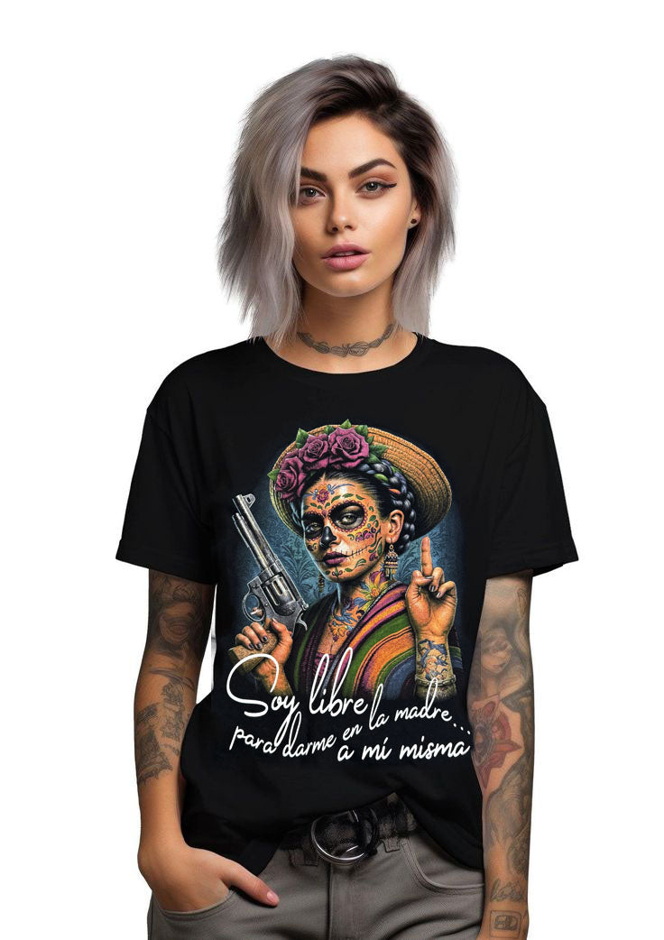 Crafted from 100% cotton, the Soy Libre T-shirt offers exceptional comfort and breathability. Its durable silk screen printing ensures vibrant, long-lasting design quality. Ideal for those seeking a stylish yet reliable wardrobe staple that combines natural fabric with expert craftsmanship.